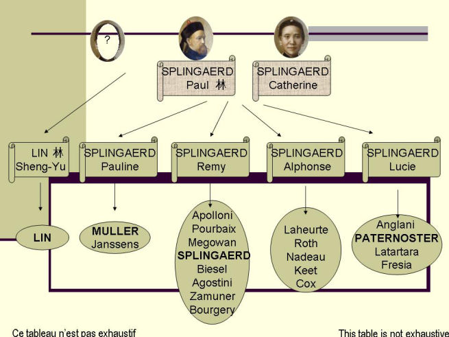 3 -Remy Splingaerd - 1879 – 1931. Paul’s middle son married Anna Zhang of Lanzhou, the niece of Alphonse’s wife. The surname Splingaerd has been carried down in Remy’s family, but the only male grandson, Jean-Pierre Splingaerd (Peter), only son of his only son, Joseph, has only produced a daughter, Tamara (Tara), so this may mean the end of the line in the genealogical sense.