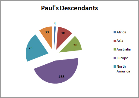 The new surnames introduced by the predominantly female descendants of Remy are: Agostini, Appoloni, Bertossi, Biesel, de Brouwer, Bourgéry,Caffroni, Gaspard, la Cava, Mavel, May, Megowan, de Micheli, Olds, Ollivier, O’Neil, Pourbaix, Powell, Regout, Rose, de Royer, Zamuner. (It is Remy’s granddaughter who wrote the biography of Paul, The Belgian Mandarin.)